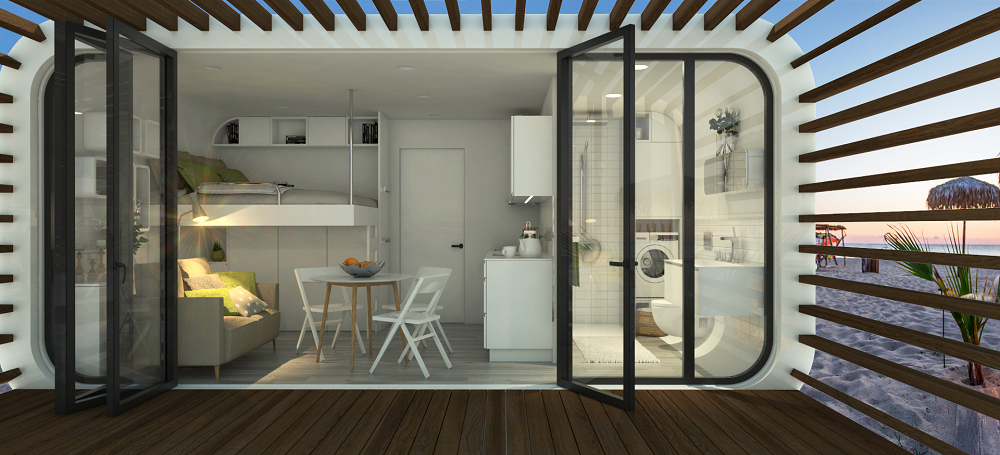 The interior layout of the bedroom and living area is thoughtfully designed to ensure privacy for guests.