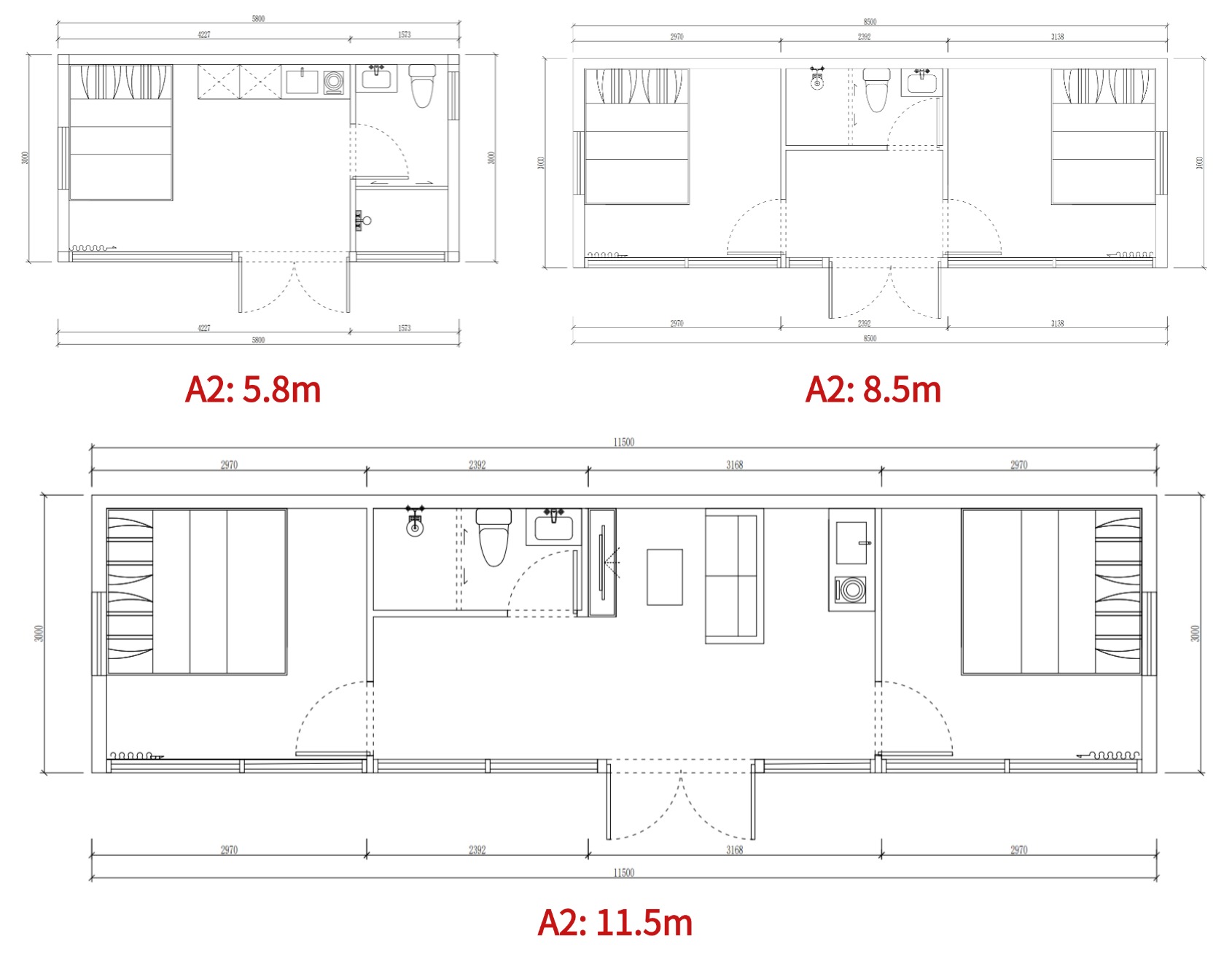 Delivery method: there are two delivery methods for Apple Cabin A2, the whole hosue and disassembled modular houses. For the whole house delivery, the house will be shipped in 40 flat rack container due to the wide width of the house up to 3m, so the shipping costs are relatively high and suitable for only 1-2 houses. For the disassembled modular houses delivery, the house will be shipped in 40 HQ,which saves shipping cost and is suitable for purchasing large quantity of houses.